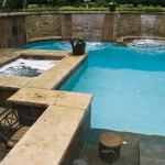 He then took the tiered design approach even further, creating a sunken grill area and a raised spa on the opposite side of the pool. These varying heights allowed the backyard to be divided into discrete areas without disrupting the project’s overall cohesion.