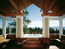 So the homeowners at this spa installation site wanted a majestic view of the nearby Rocky Mountains and Flathead Lake, the largest natural freshwater lake in the western United States. In addition, they felt the spa’s enclosure deserved no less than the rest of the house’s 5,000 square feet of high ceilings and great, wide-open rooms.