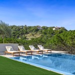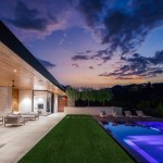 With a relatively tight space between the home and pool, the team took certain measures to maximize walking area. First, Garcia-Sotelo brought the deck directly up to the perimeter-overflow slot, rather than using coping there. Then extra-wide stepping stones were floated in the lawn. Measuring about 20-by-48-inches, they were placed horizontally and 6 inches apart. “You can walk hand-in-hand with your partner across them, and the gait is such that you walk across the grass portions more easily,” Garcia-Sotelo says. “It’s one step per pad, versus on a square you have to change your gait to walk across.”