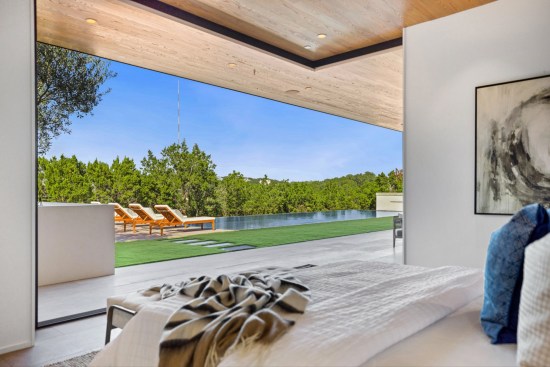 The Austin, Texas-based architecture firm Dick Clark + Associates designed this house to blend in with the hillside, tucked neatly into the trees. In fact, you almost have to drive up to it to see it.