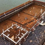 In addition to the mere fact of having a pool inside a lake, designers and builders had to prepare it for an unusual reality: To combat an aggressive pest that takes over the lake, the city regularly drains and refills it, causing the water level to fluctuate wildly. Upon refilling, the lake generally will rise past the pool’s elevation and submerge it. So the vessel had to be built to withstand this. To support the poolscape, 19 pilings measuring 66 feet were driven into the lake floor to reach bedrock. The pile driver had to be brought in by barge. Between the horizontal beams, located directly under the pool and tying the pilings together, the team placed gravel so that the highly expansive clay soil could swell freely and without consequence.