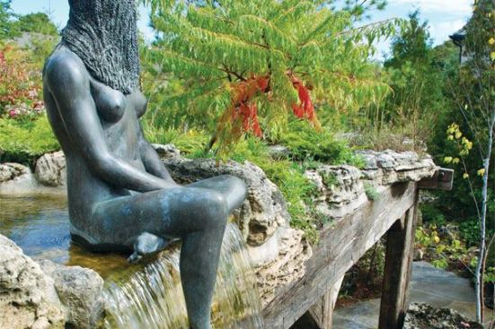 The waterfeatures alone are impressive: a natural-looking waterway sporting 14 waterfalls and three koi ponds, running from one end of the property to the other; a reflecting pool; a small fiberglass pool; and a spa. And all on just a half-acre.