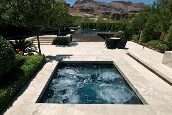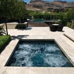 Not only does this unique geometry serve to blend home and pool, it also allows for a comfortable environment for bathers. “I wanted to create cozy spots where you could relax in the water with your arms up,” says Joey Pecoraro, owner of Architectural Design Concepts in Las Vegas.