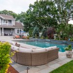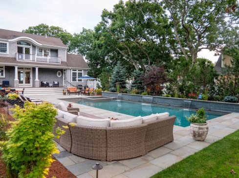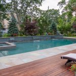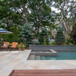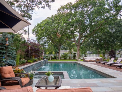 The goal here was to integrate a new pool and deck into a lived-in Northeastern abode with an existing bluestone deck. Thanks to some strategic materials choices, the final product gives new life to the property, yet seems like it’s been there all along.