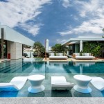 The waterscape is lined in green Sukabumi porcelain tile to extend the tropical feel.
