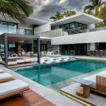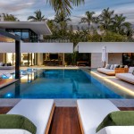 Anchoring the yard is a two-sided vanishing-edge pool, built by CPS Outdoors, also based in Miami. The designer aligned the long rectangle with the home’s major view corridors to properly frame the bay beyond.