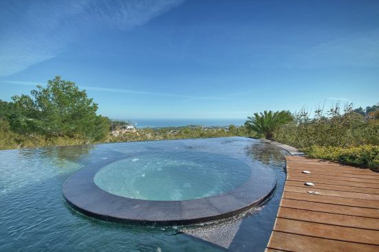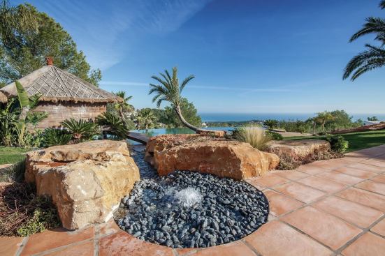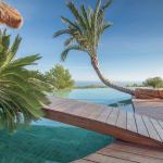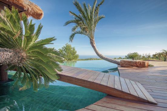 Exotic getaway: This is a truly international endeavor — a pool set in Spain, owned by Russian clients who travel there and to Bali. The clients decided they wanted two pools. One would sit next to the home to integrate with its classic Spanish style. The other would be placed farther away, to create a miniature Balinese getaway. Designer Marcos Gisbert Perez set the Bali pool at a lower elevation to give it a more pronounced sense of separation from the main pool. A wooden hut is elevated about 1 meter, with a teak bridge easing access between it and the pool. For absolute authenticity, Perez traveled to Bali to select the materials and ship them to Spain.