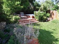 To complete the garden effect, a climbing rose was inserted behind the spa, and a citrus tree was situated in back of the deck.