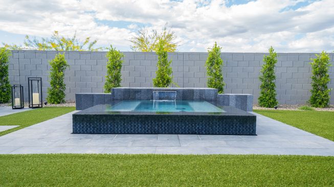 “Many of the lots are 30-by-60 feet,” says Paul Swirski, designer and project manager for Phoenix-based California Pools & Landscape. “That doesn’t give you a lot of room for a backyard space.”