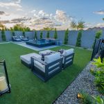 Stepping pads set in artificial turf soften the space so it doesn’t feel eaten up by hardscape.
