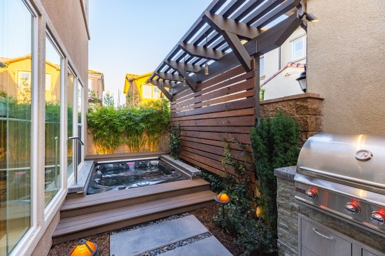 Kleefisch knew he could fit the dimensions of a spa and grill into the footprint of the side yard. But the space couldn’t accommodate the sprawling out needed for concrete construction.
